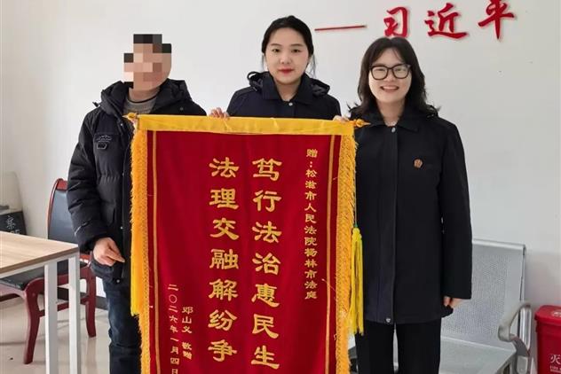 岁序更替,华章日新。2026年伊始,杨林市法庭的办公区暖意融融,当事人邓某将一面绣有“笃行法治惠民生 法理...