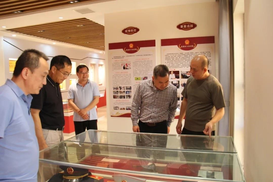 随后,张学平院长一行实地参观了松滋法院陈列室、审判庭等区域,了解了相关的配套设施,详细听取了庭审安保、审判庭改造等工作情况介绍。