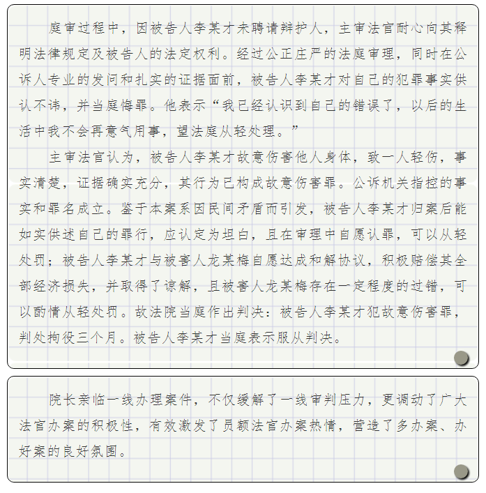 松滋法院院长担任审判长当庭宣判一起故意伤害案件