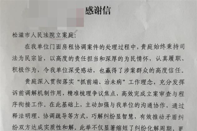 一封感谢信的背后:六起租金纠纷在年前画上句号